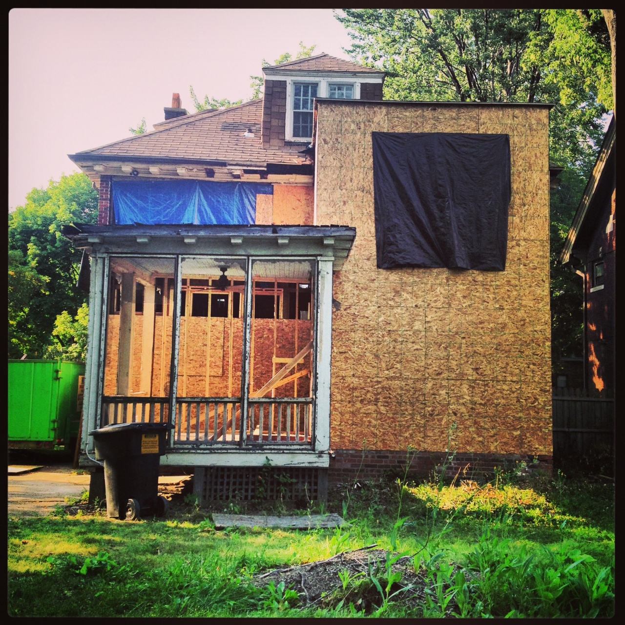 This is the rear porch and “addition” that we’ve saved — and which are causing floor plan and budget problems. But it’s going to be gorgeous when it’s all brick and finished porch.
